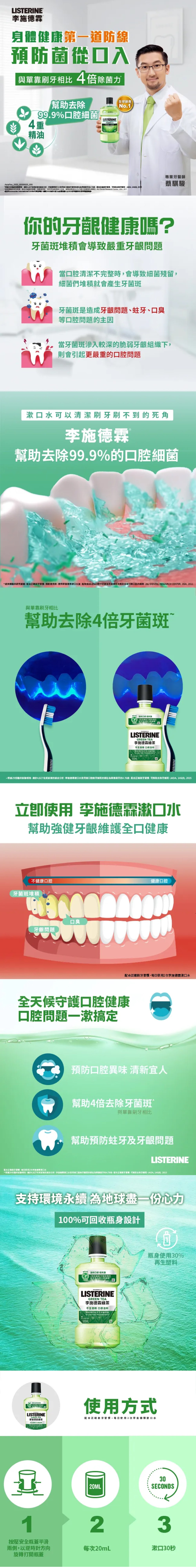LISTERINE 李施德霖 防蛀護齦漱口水 綠茶 750ml 1瓶