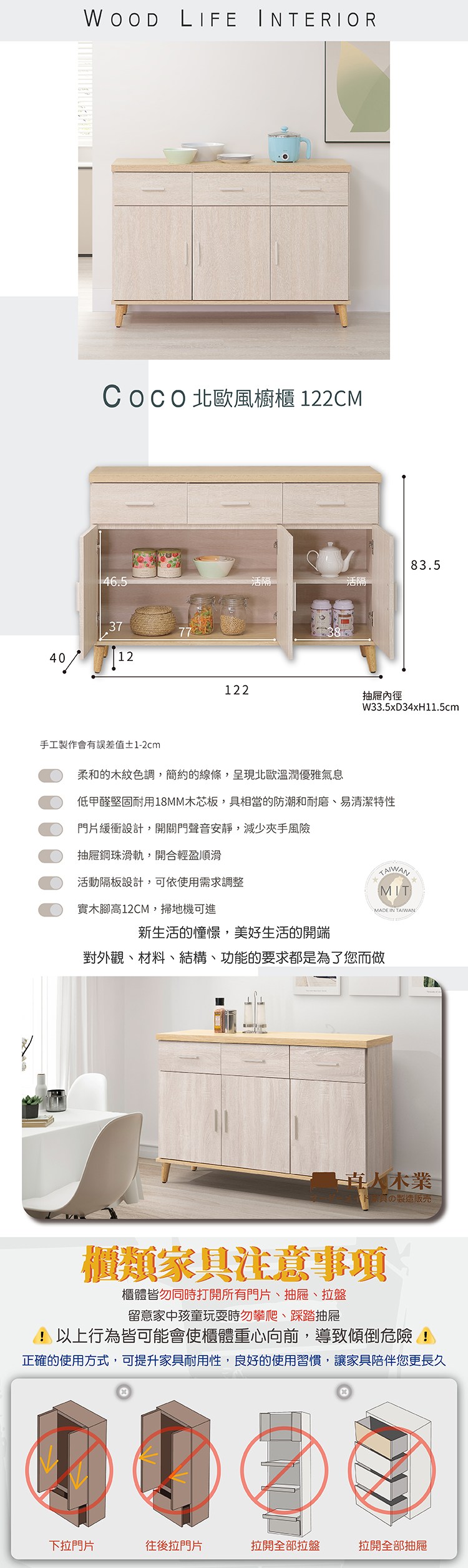 直人木業-COCO北歐風櫥櫃122公分