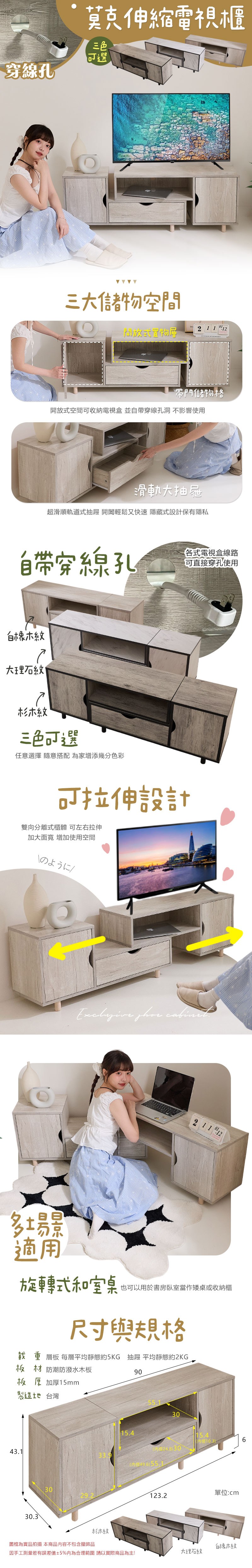 唯熙傢俱-羅伊雙色伸縮電視櫃