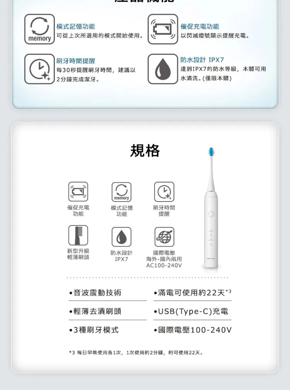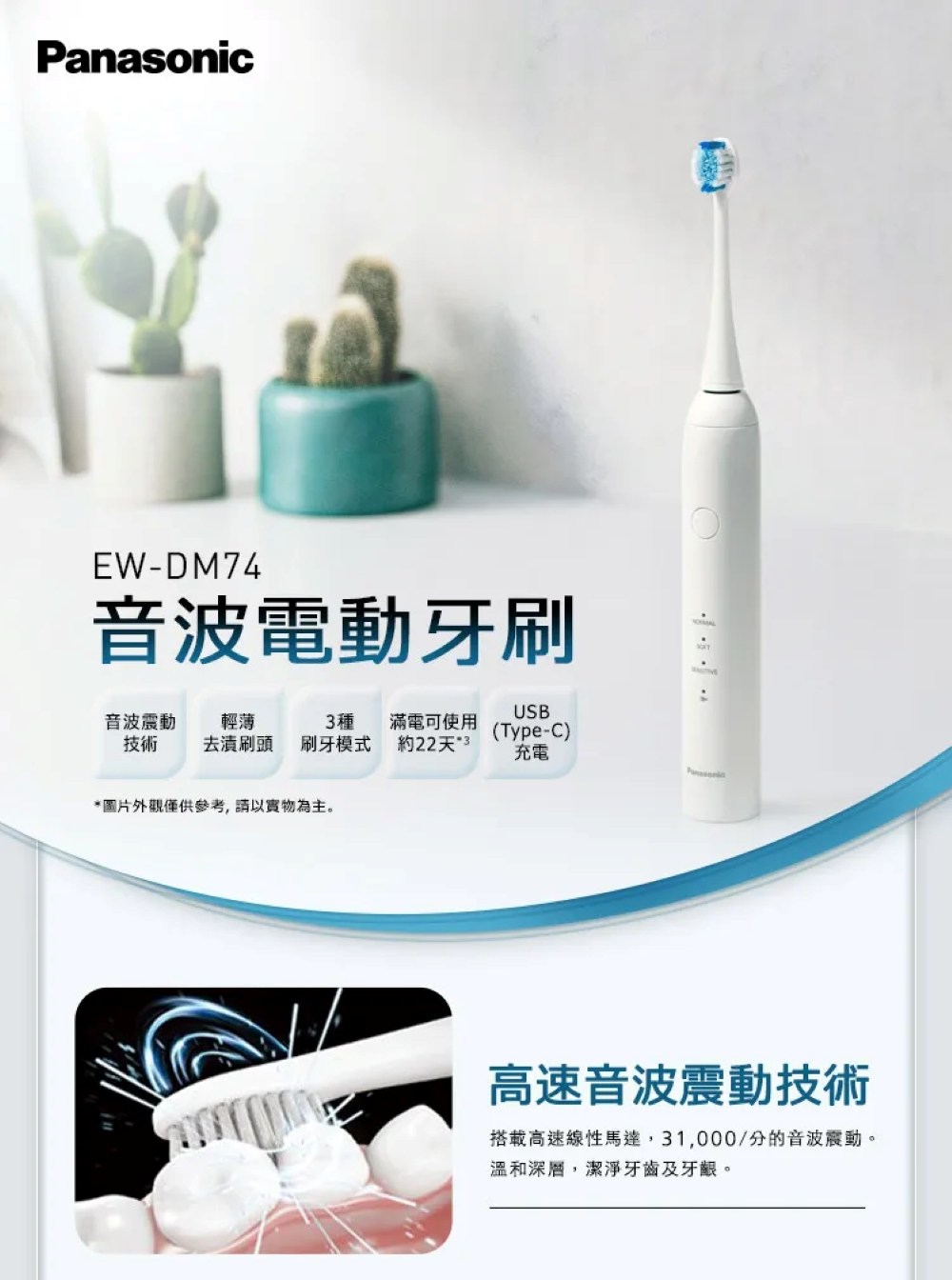 Panasonic 國際牌 無線音波震動國際電壓充電型電動牙刷 EW-DM81-W