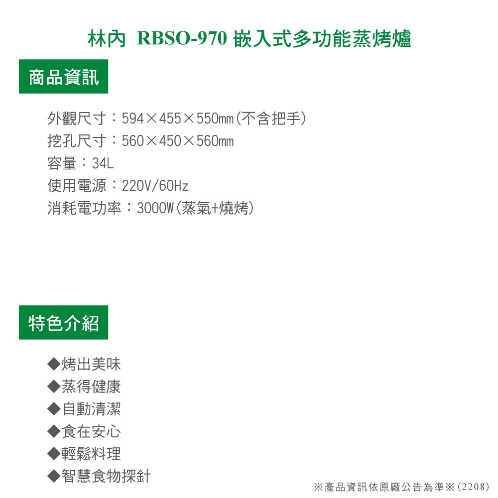 (全省安裝)林內義大利進口嵌入式蒸烤爐烤箱RBSO-970 ★送陶板屋餐券4張