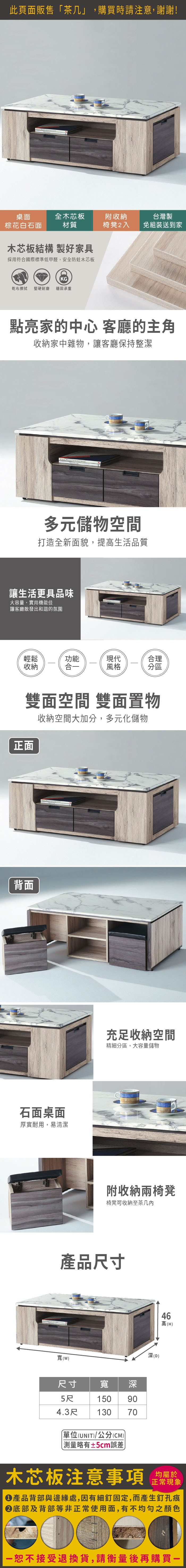 ASSARI-菲芮5尺石面大茶几(含2椅凳)(寬150x深90x高46cm)