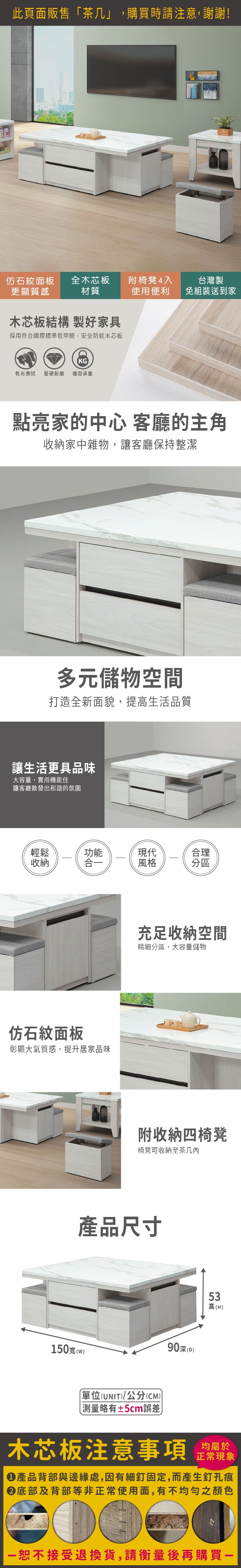 ASSARI-威尼斯5尺大茶几(含4椅凳)(寬150x深90x高53cm)