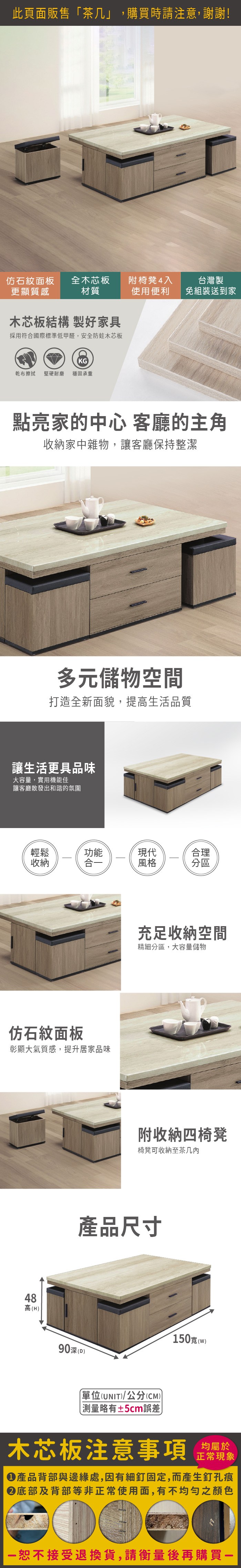 ASSARI-威尼斯5尺大茶几(含4椅凳)(寬150x深90x高53cm)