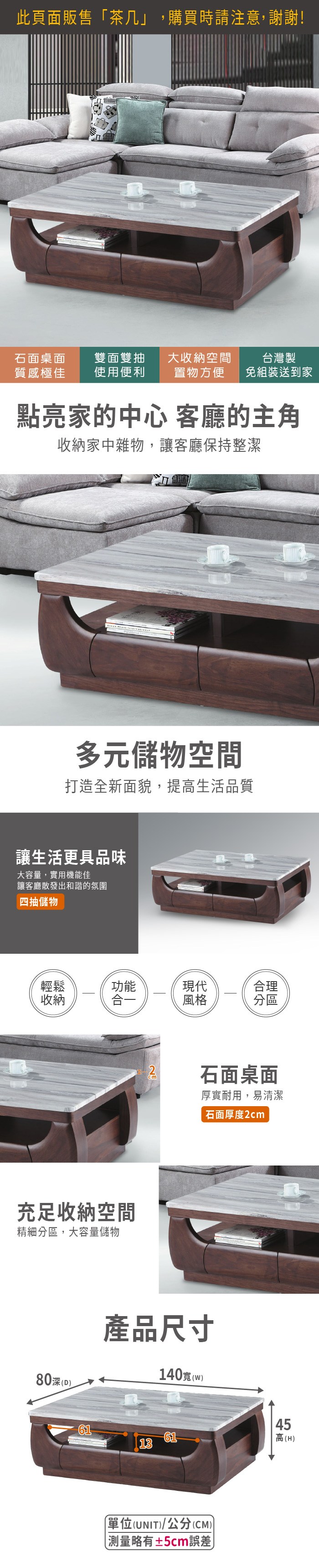 ASSARI-波比4.7尺石面大茶几(寬140x深80x高45cm)