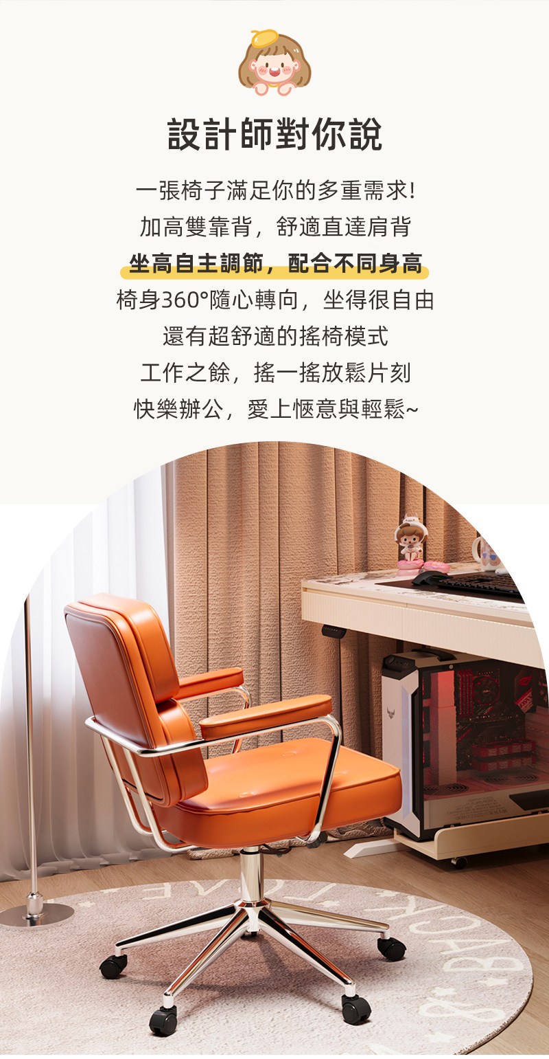 澄境 簡約風可升降皮革電腦椅奶茶色