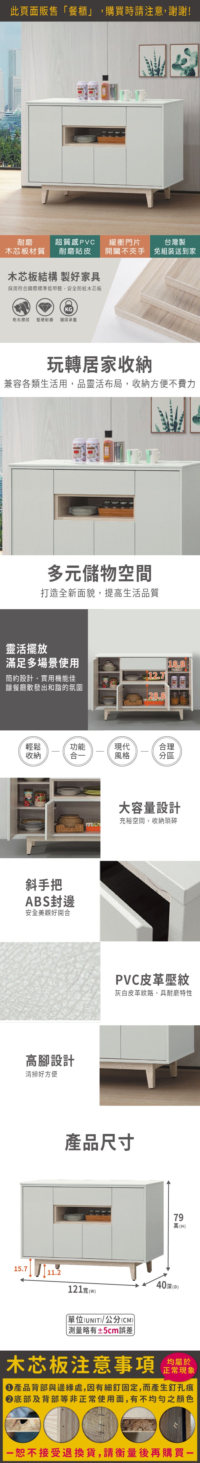 【唯熙傢俱】貝拉白色4尺餐櫃