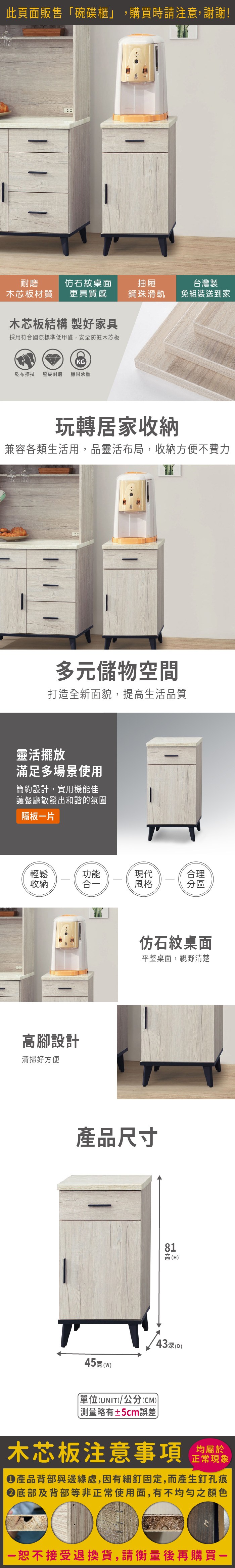 ASSARI-洛瑪白橡木1.5尺碗碟櫃(寬45x深43x高81cm)