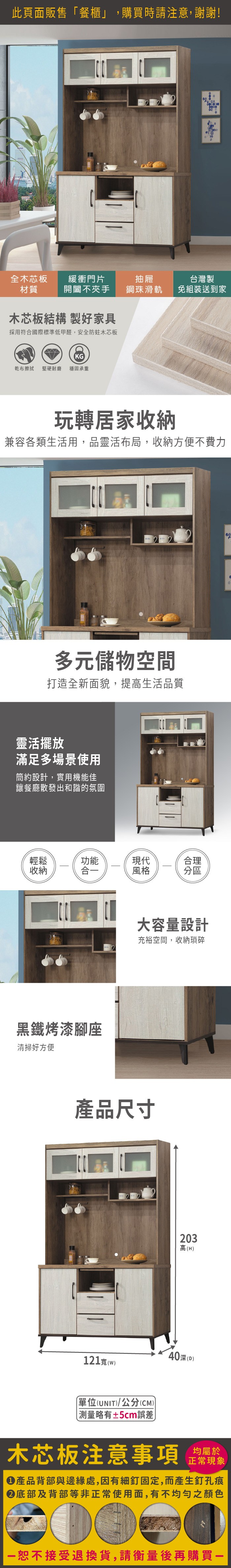 ASSARI-沐光4尺餐櫃全組(長121x深40x高197cm)