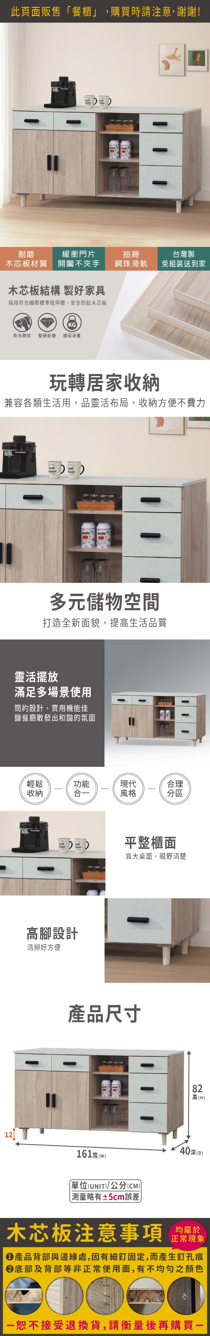 文創集 卡爾夫5.4尺二門五抽餐櫃櫃-161x40x82cm免組