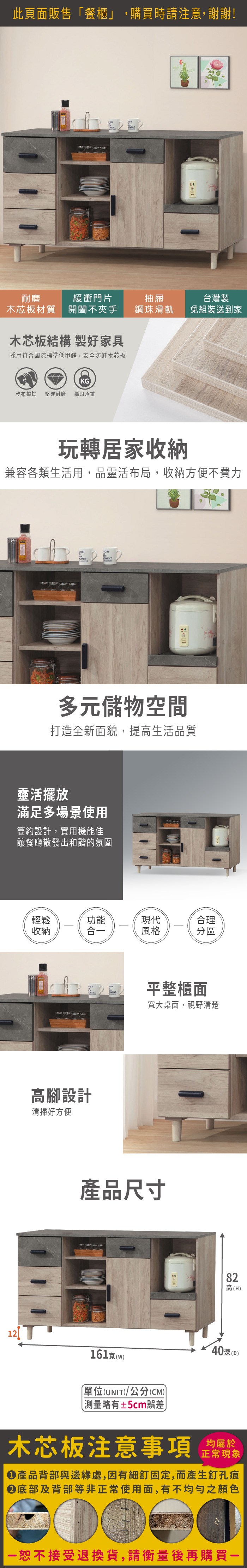 AS雅司-索萊爾橡木美耐皿仿石5尺碗盤餐櫃-160×40×78cm