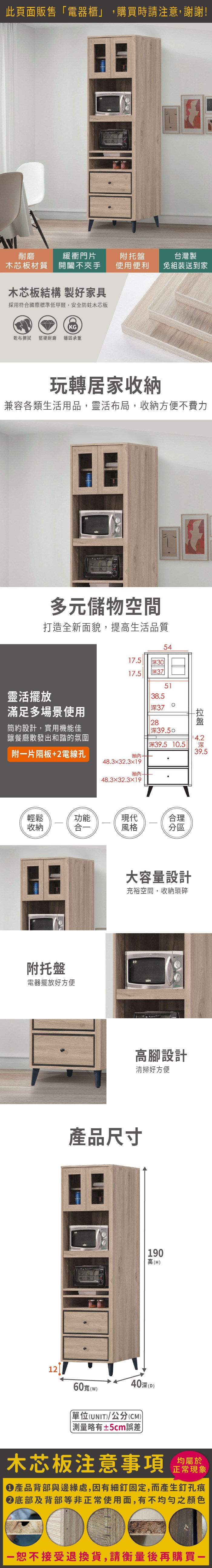 文創集 愛楓木2尺開門拉盤高電器櫃/餐櫃-60x45x200-cm免組
