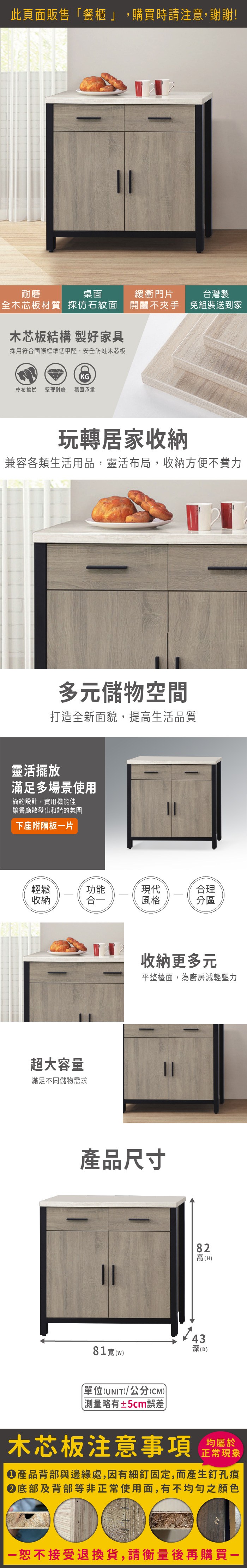 文創集 卡瑪克2.7尺二門二抽低餐櫃-81x40x82-cm免組