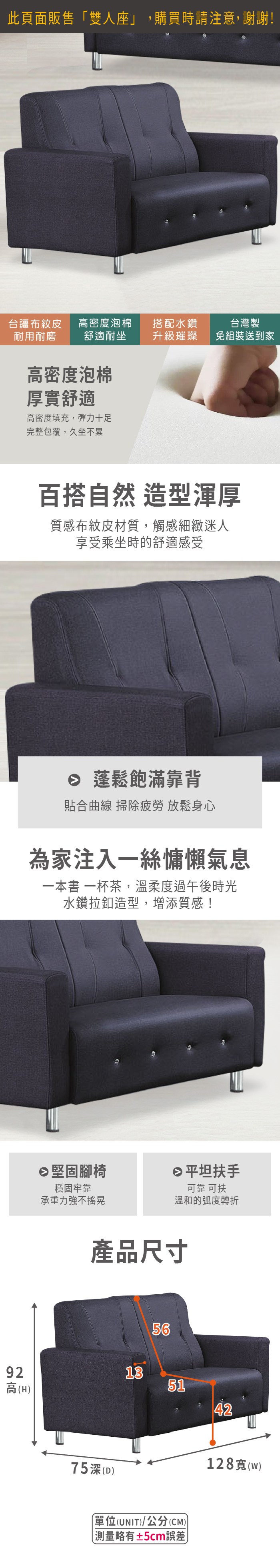 Homelike 喜家居雙人座貓抓皮沙發(2036)