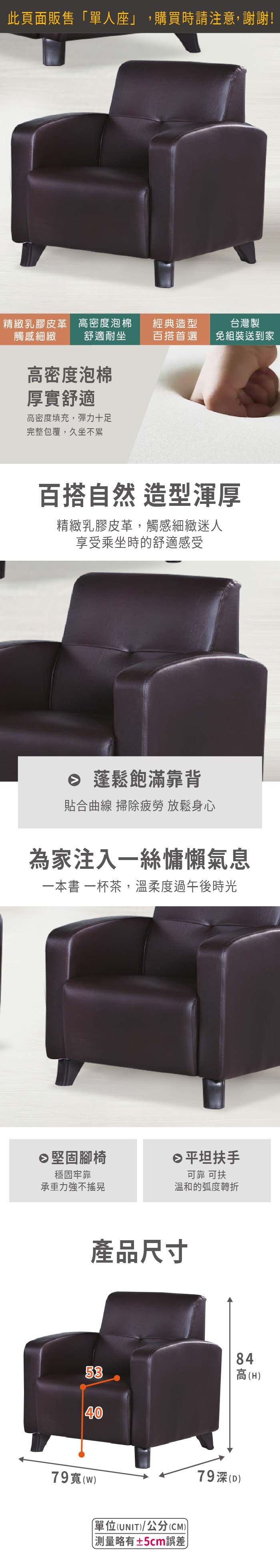 MUNA家居 101型時尚布紋皮沙發(單人座) 79X79X84cm