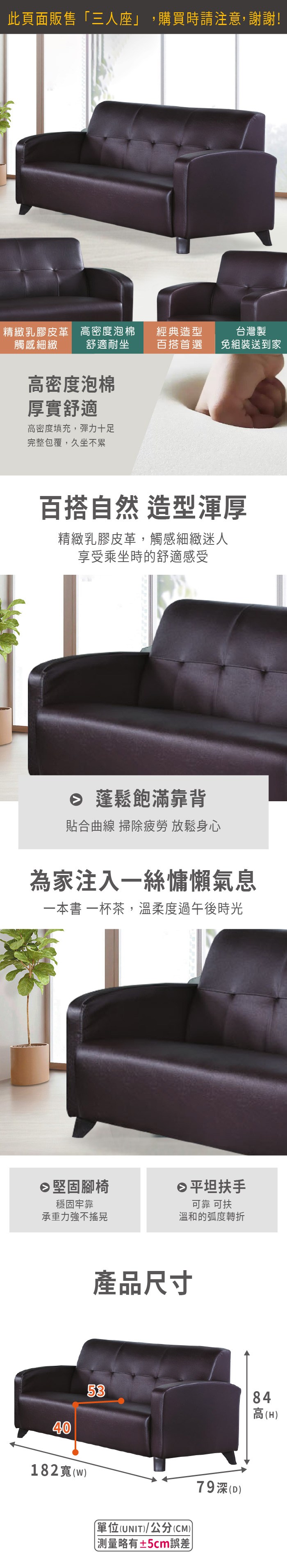 【本木】MIT台灣製 夏洛特強韌耐刮貓抓皮3人坐沙發-唐茶色#6701