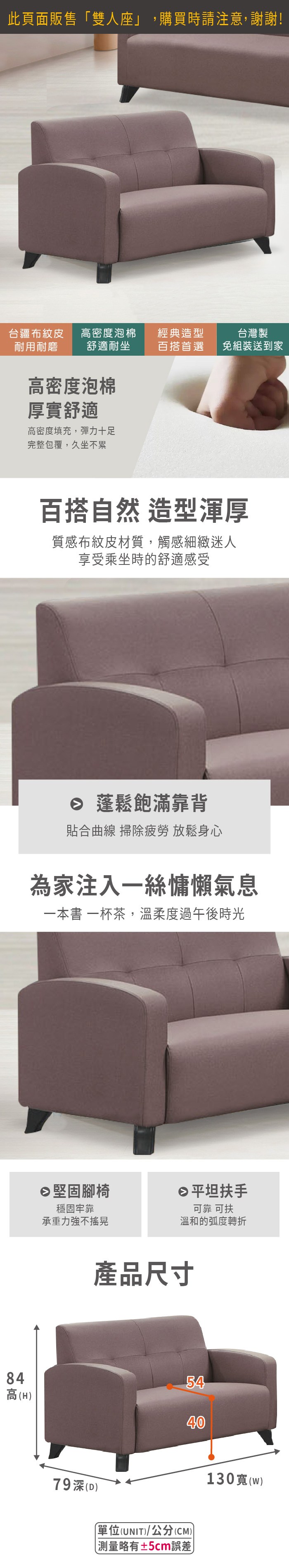 【H&D東稻家居】雙人座 布古雙人布沙發/2色/DIY自行組裝