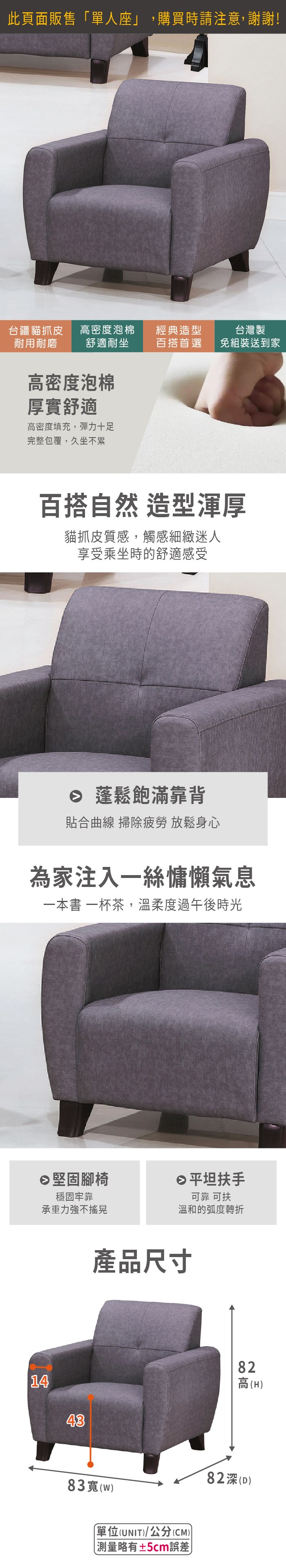 【UHO】莉亞-貓抓皮單人沙發 -運費另計214淺灰
