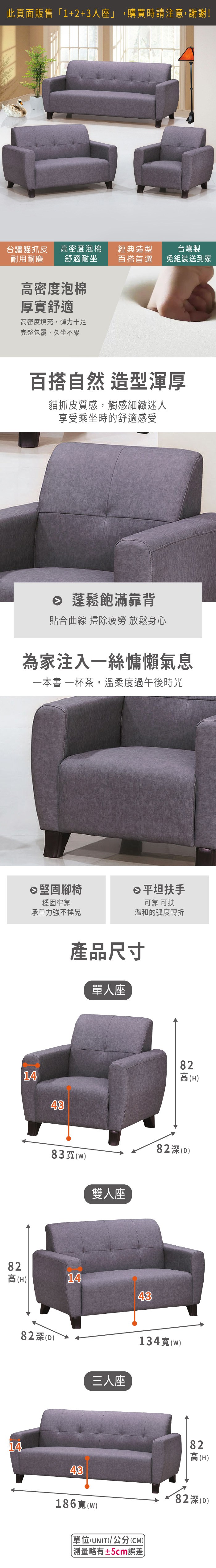 【IDEA】皮諾加深雙靠枕舒適雙人沙發/布沙發