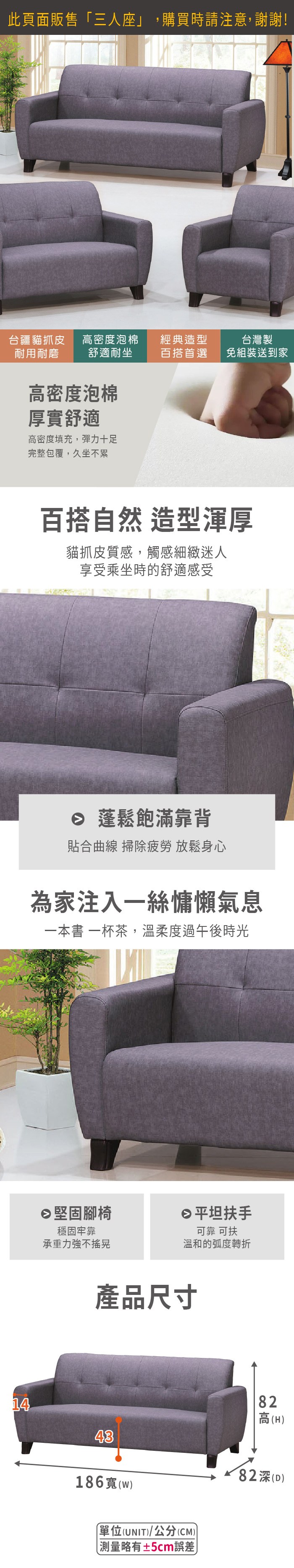 ASSARI-凱特耐磨抑菌四人座貓抓布沙發-鐵腳