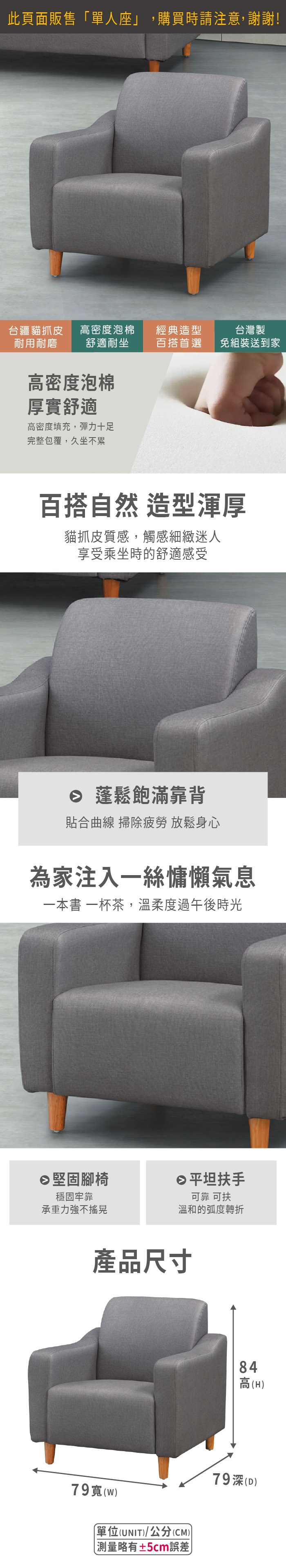 【本木】宇智波 台灣製簡約舒適1人坐沙發-雲灰色#6710