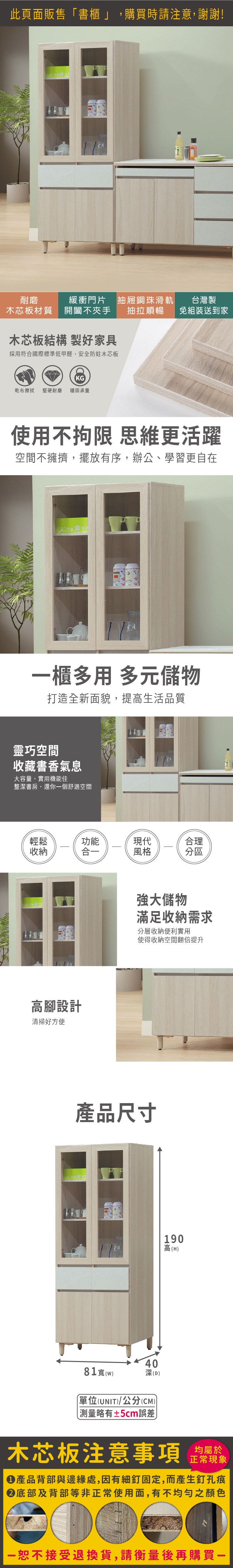 直人木業-DORIS現代風下抽玻璃高被櫥書櫃80公分