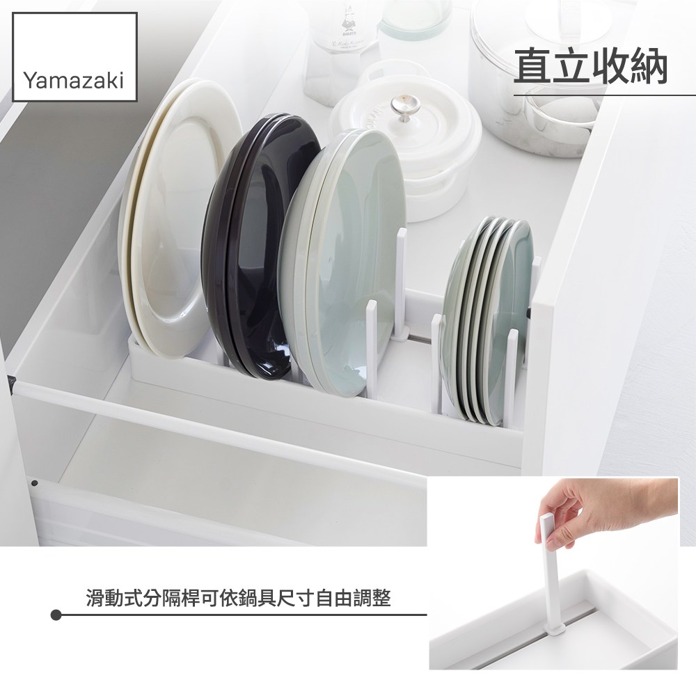 滑動式分隔桿可依鍋具尺寸自由調整,能將平底鍋或鍋蓋直立收納,更加節省空間。