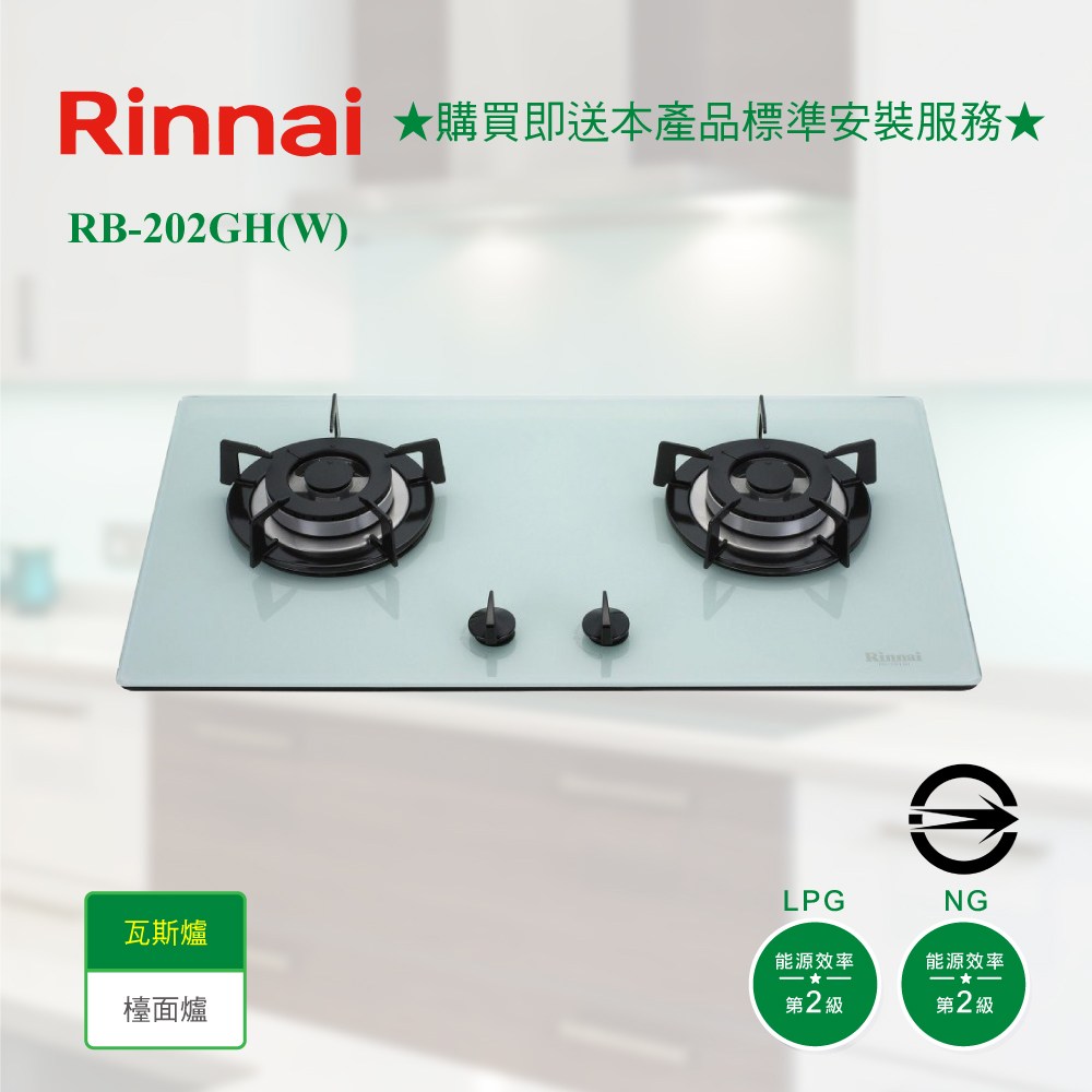 [林內] RB-202GH(W)雙口玻璃防漏檯面爐(白)_天然NG1天然瓦斯