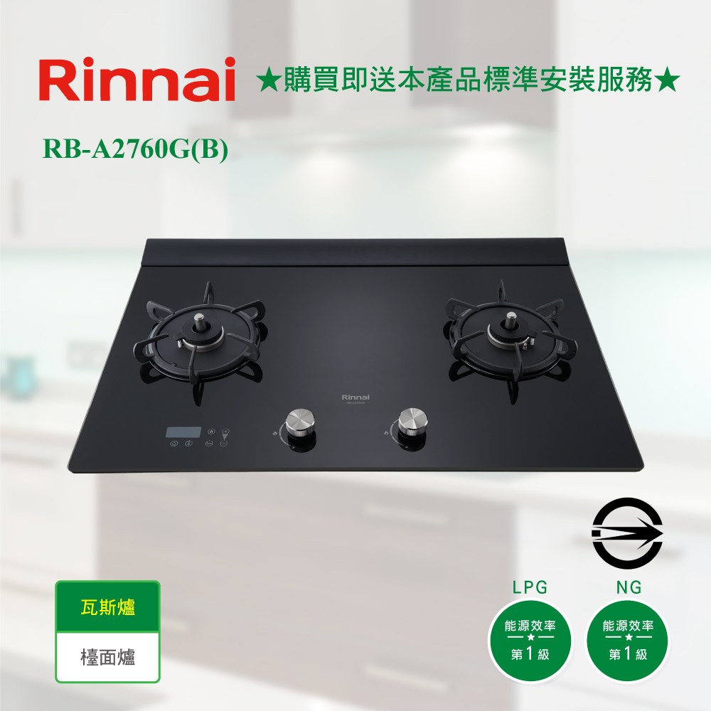 [林內] RB-A2760G(B)雙口緻溫定時玻璃檯面爐(黑)/大天板_桶裝LPG桶裝瓦斯(液化)