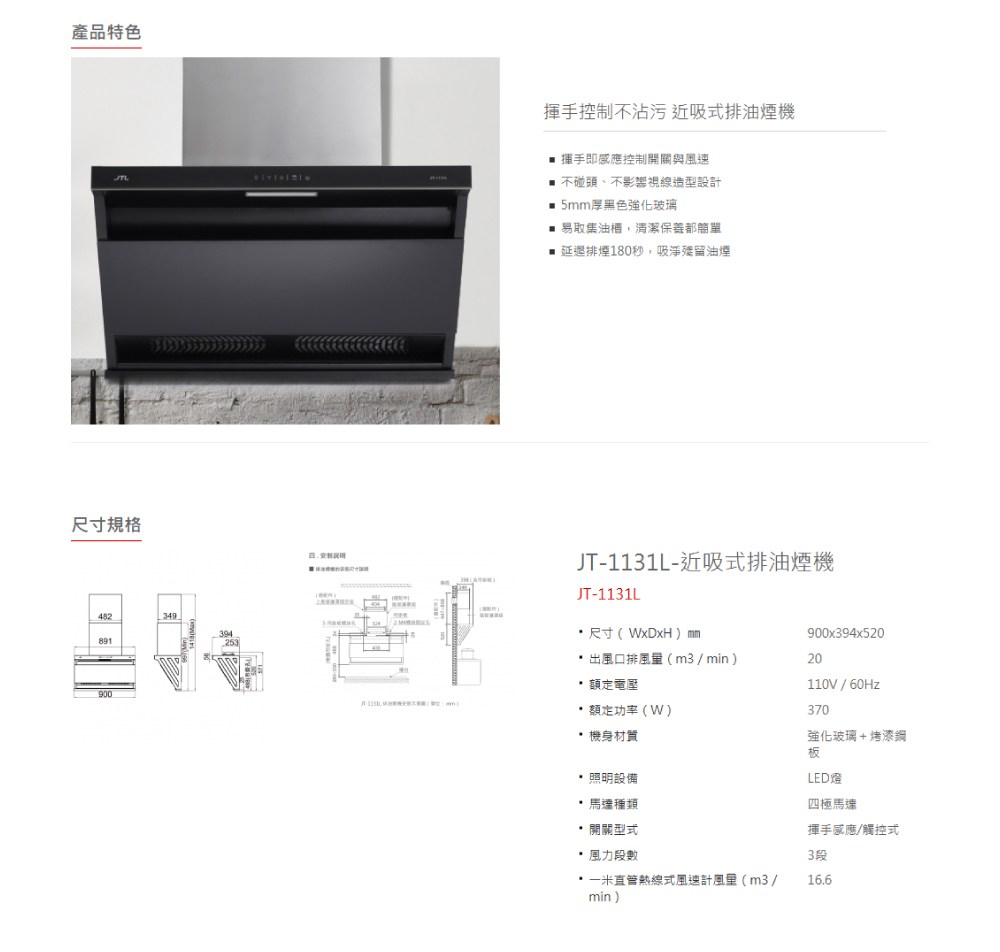 (全省安裝)喜特麗90公分近吸式排油煙機JT-1131L ★送7-11商品卡2000元