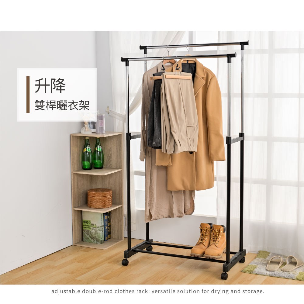 【Amos】日系簡約雙桿伸縮吊衣架/曬衣架黑色
