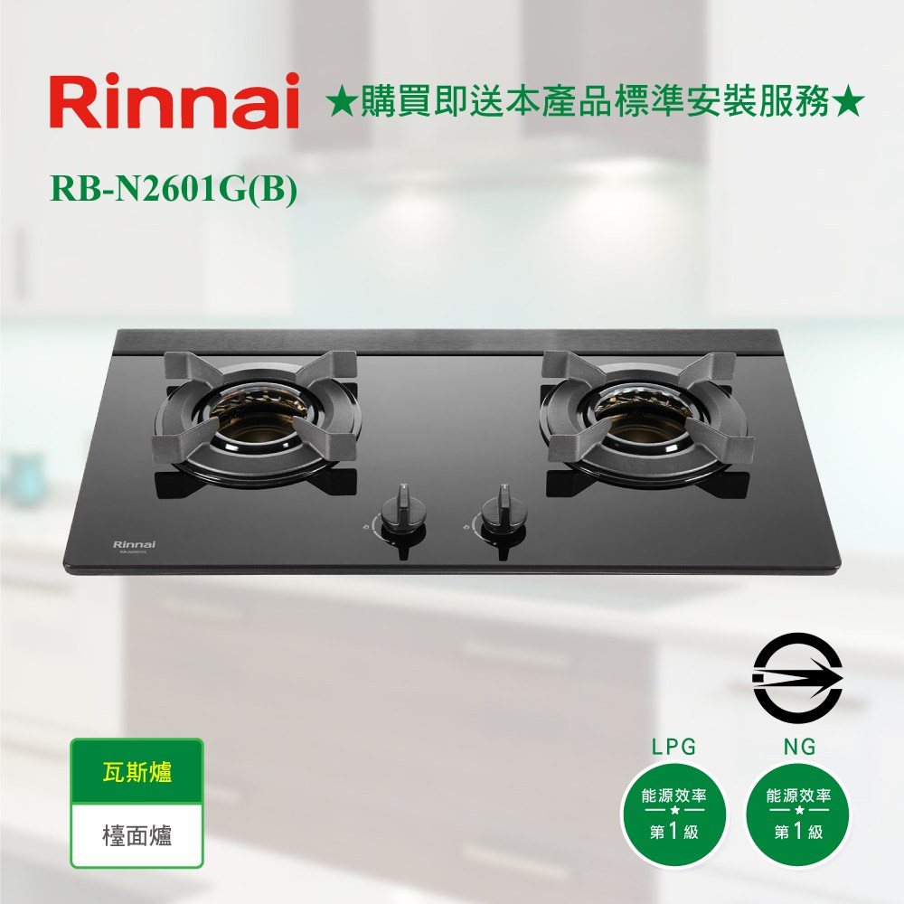 (全省原廠安裝)Rinnai林內 RB-L2610G(B) 檯面式彩焱黑玻璃雙口爐 LED【APP 4%回饋】 結帳9折