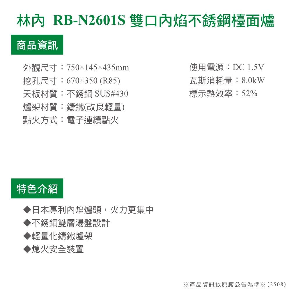 ※產品資訊依原廠公告為準※(2508B)