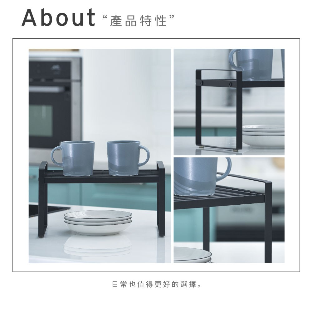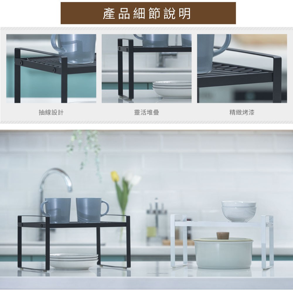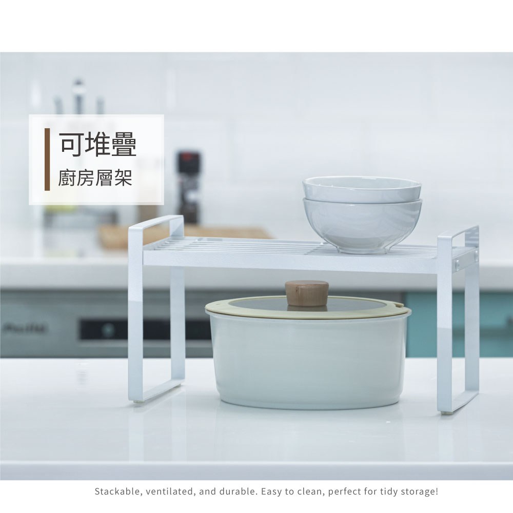 立刻下載【H&R安室家】台製廚房可堆疊桌面置物架 收納架 KC73白色