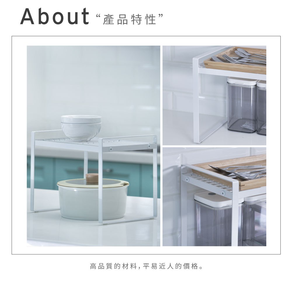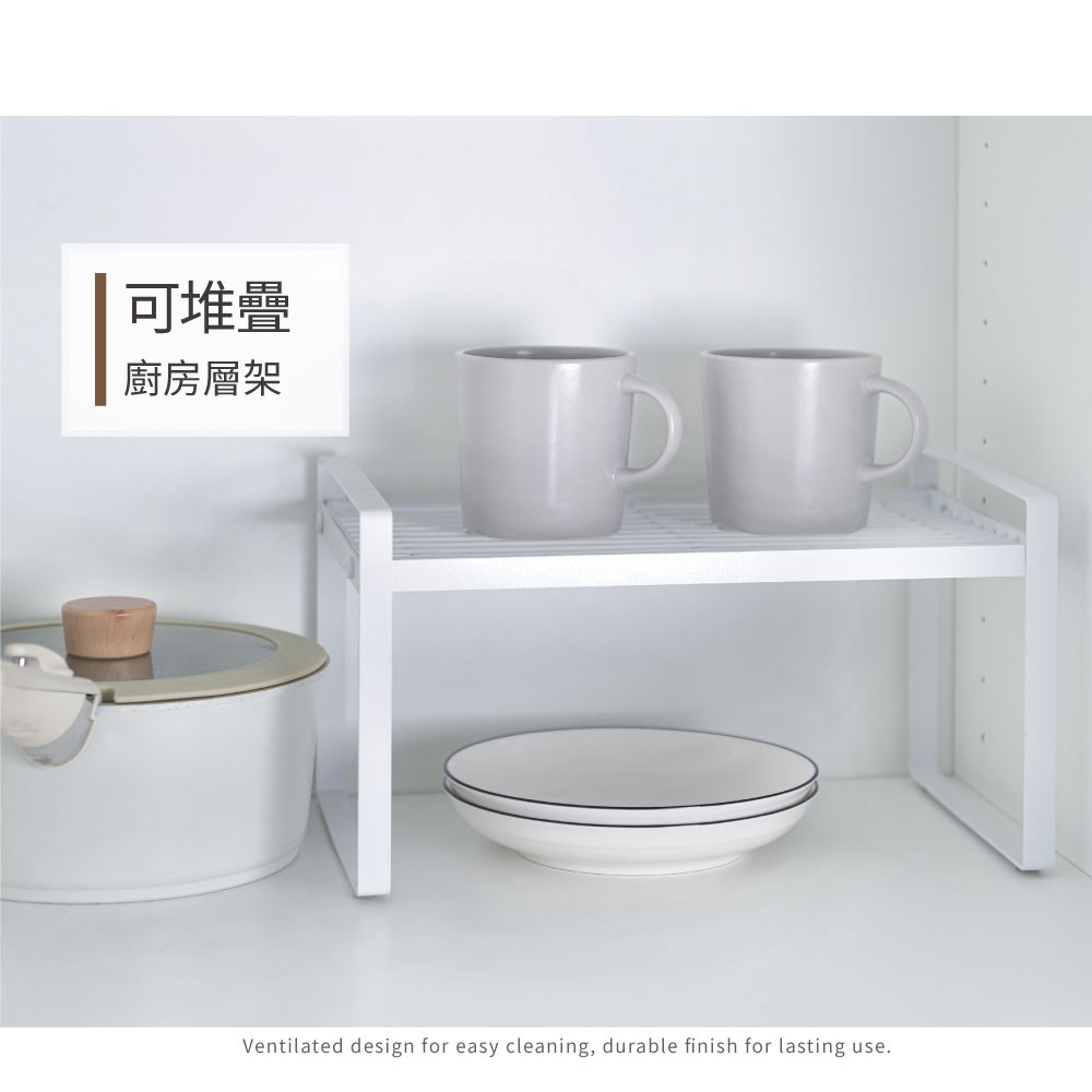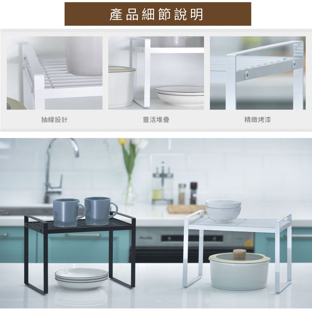點我下載【H&R安室家】台製廚房可堆疊桌面置物架 收納架 加高款 KC75白色