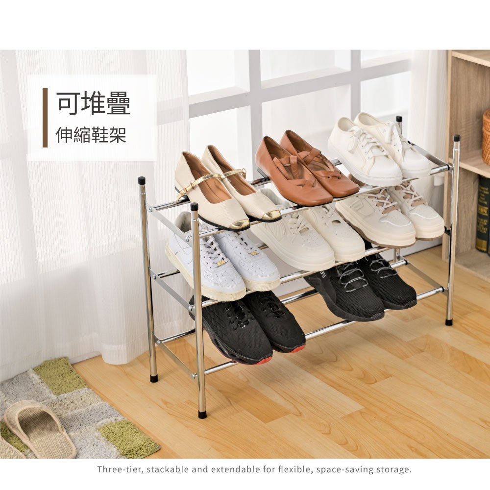 【好氣氛家居】2入組免安裝摺疊伸縮收納鞋盒/鞋櫃 鞋架(儲物櫃 收納櫃/2組共6層)
