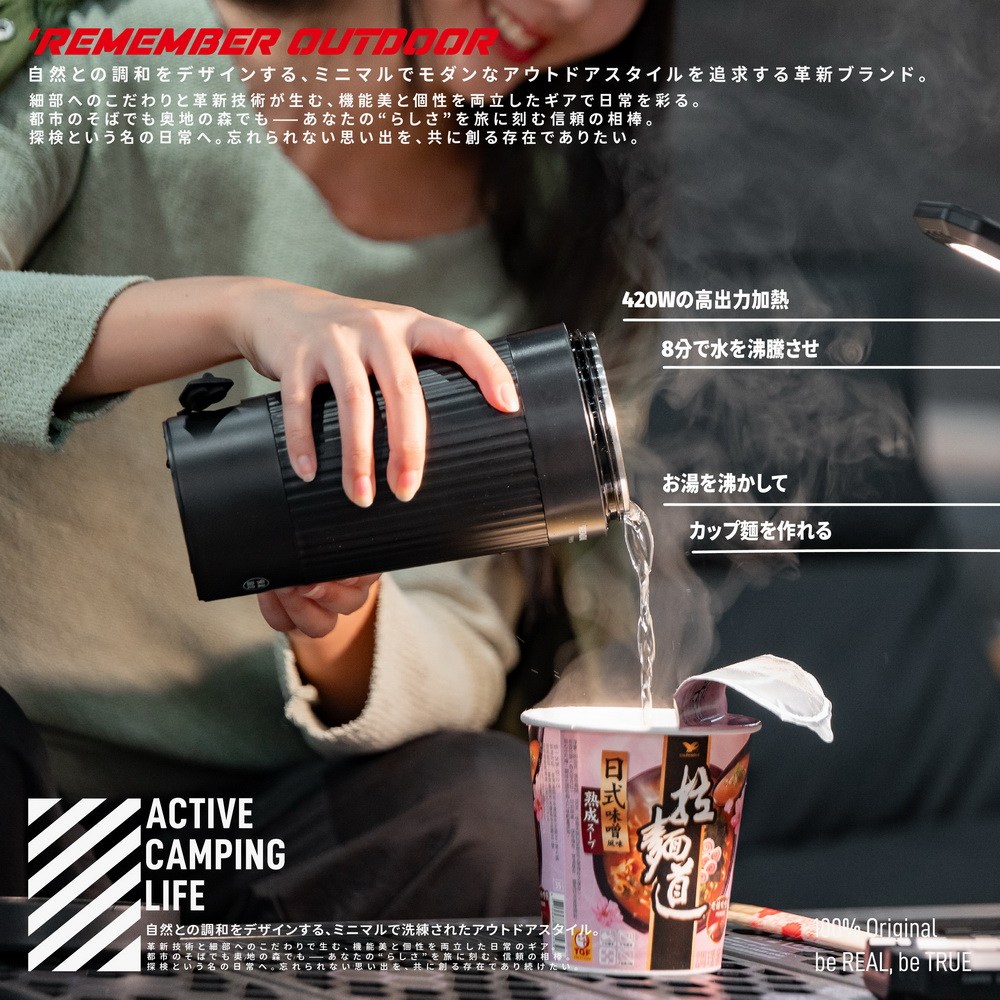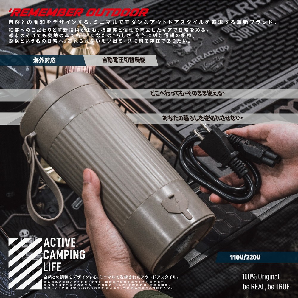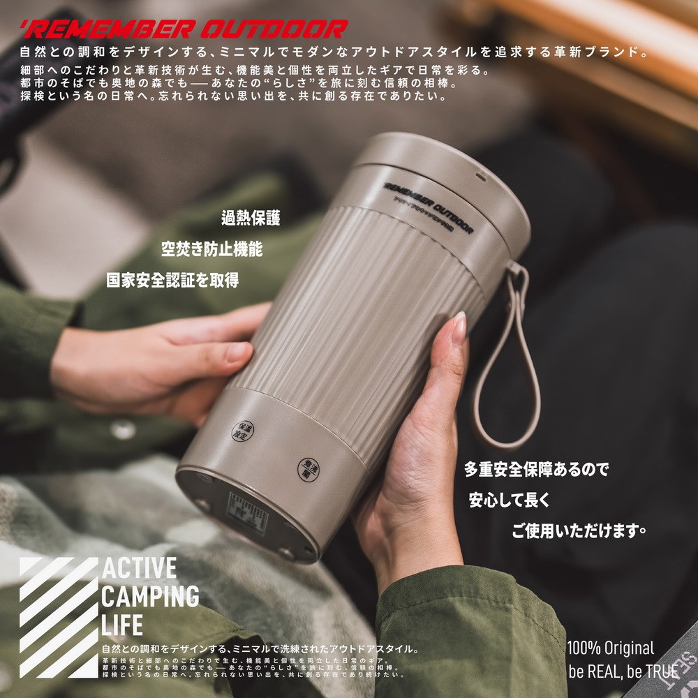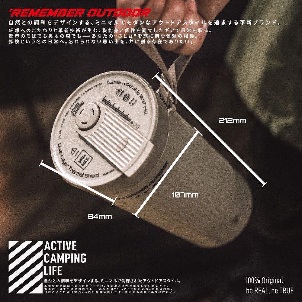 <<ロハキャンプ | 探索自然,設計的啟航>> herever you go, your perfect cup of warmth is just a button away. 關於 Remember Outdoor 源於軍風,強調簡約與實用,經過精心思考,去無存菁,只保留最核心的部分,造就簡約就是好的露營裝備,使品味與功能並駕齊驅。