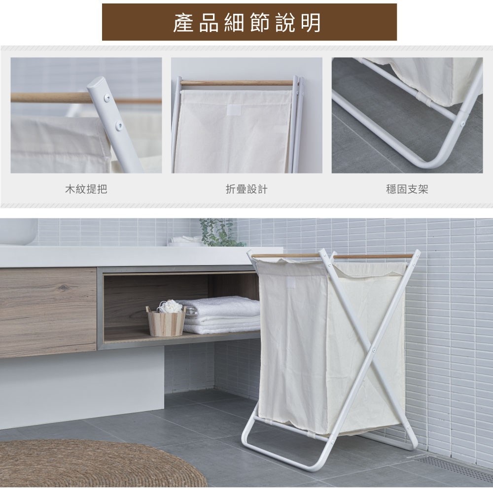 E.dot 北歐風輕巧可折疊洗衣收納籃 37 x 30 x 44.5cm 方格