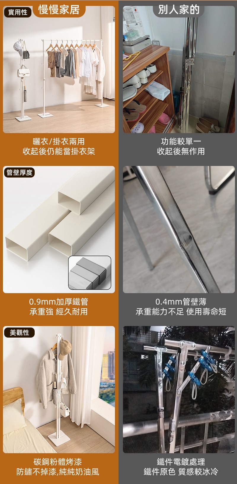 RICHOME 單桿伸縮曬衣架 高低長寬可調整 移動晾衣架 可調整吊衣架 棉被架 掛衣架 HA164