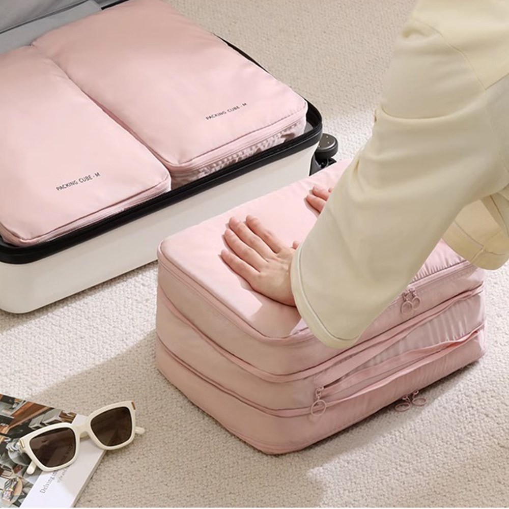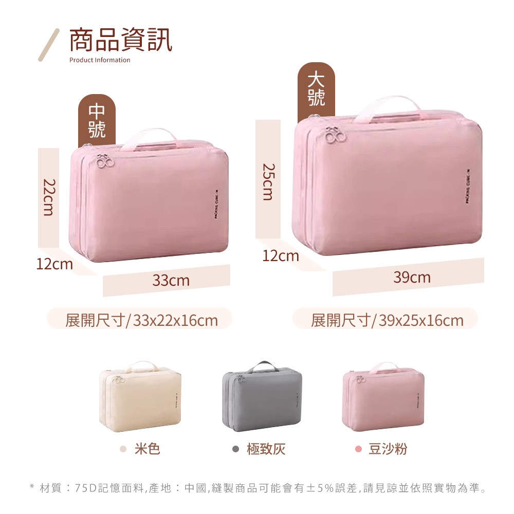 【Mr.box】雙層雙拉鍊可擴展旅行衣物行李箱壓缩袋-(中號)米色(中號)
