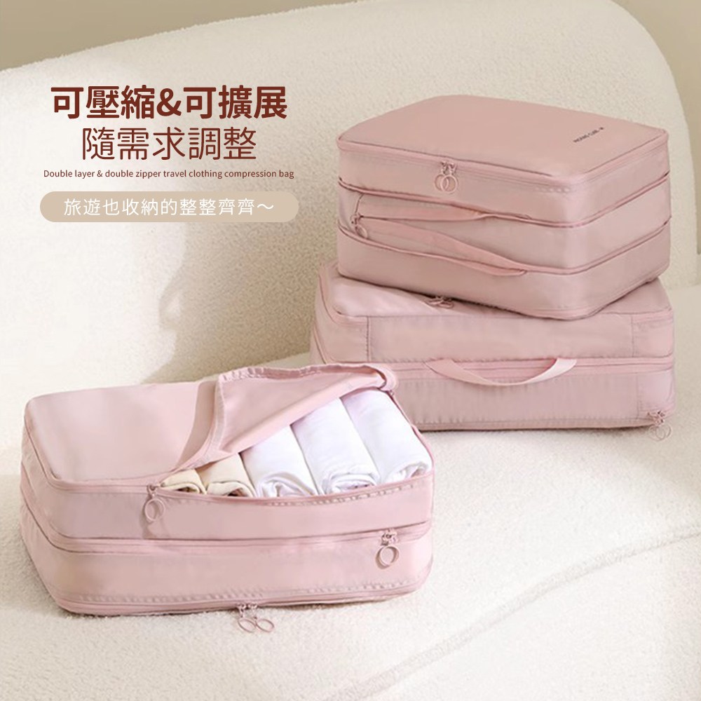 【Mr.box】雙層雙拉鍊可擴展旅行衣物行李箱壓缩袋-(中號)米色(中號)