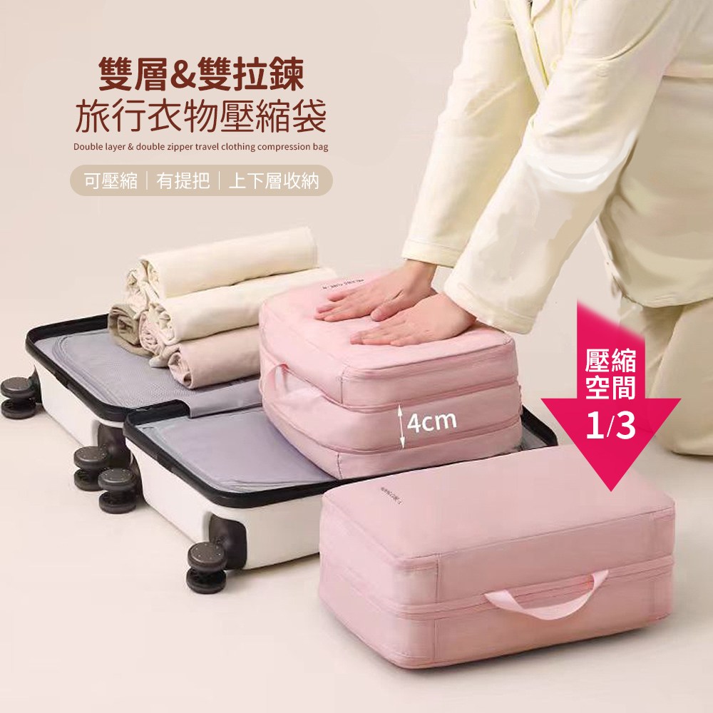 旅行衣物收納袋 OD65-4 中 粉色 可壓縮行李收納袋 手提衣物整理袋 1個