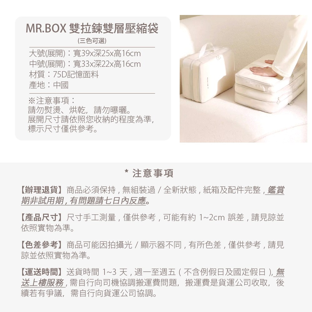 【Mr.box】雙層雙拉鍊可擴展旅行衣物行李箱壓缩袋-(中號)米色(中號)