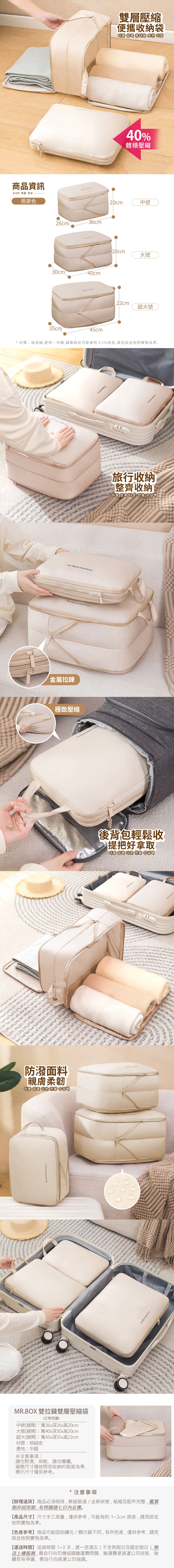 【Mr.box】雙層雙拉鍊旅行衣物行李箱壓缩袋-燕麥色(中號)燕麥色(中號)