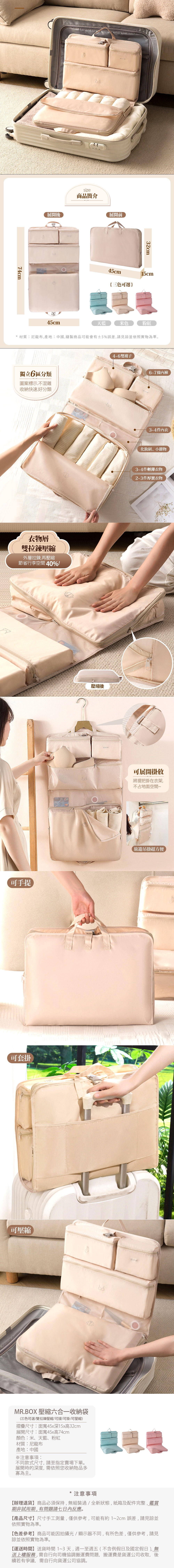 【Mr.box】壓縮六合一旅行收纳袋-可套壓缩款天藍色