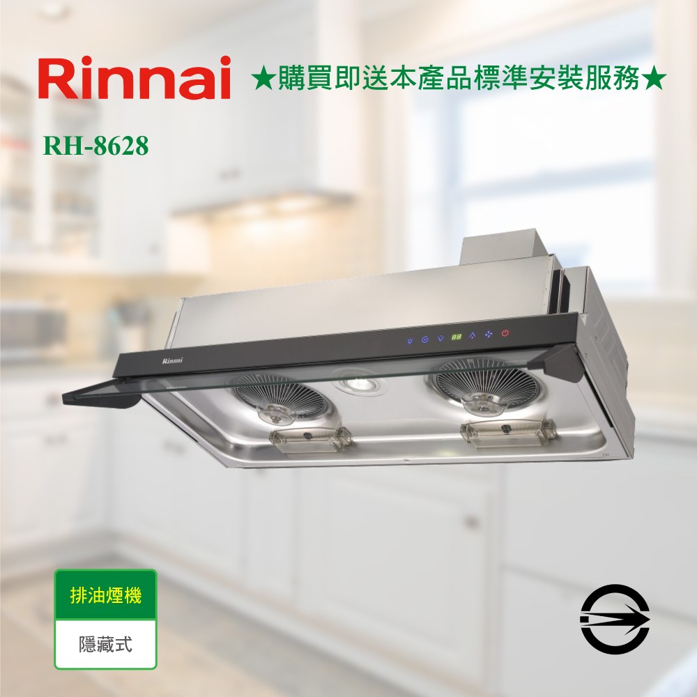RINNAI林內 隱藏式 全直流變頻 排油煙機 80cm MH-8628 合格瓦斯承裝業 全省免費基本安裝(離島及偏遠鄉鎮除外)
