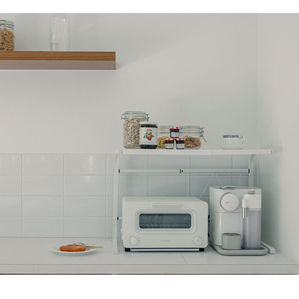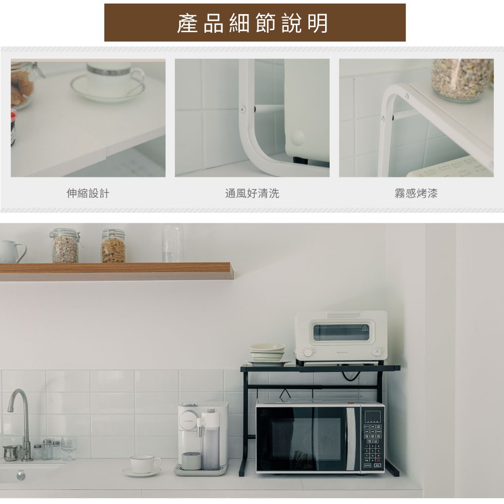 【H&R安室家】台製時尚伸縮式微波爐架 置物架 收納架 KS36A白色