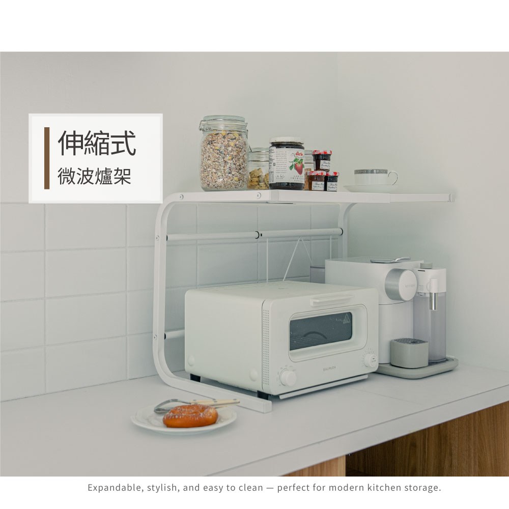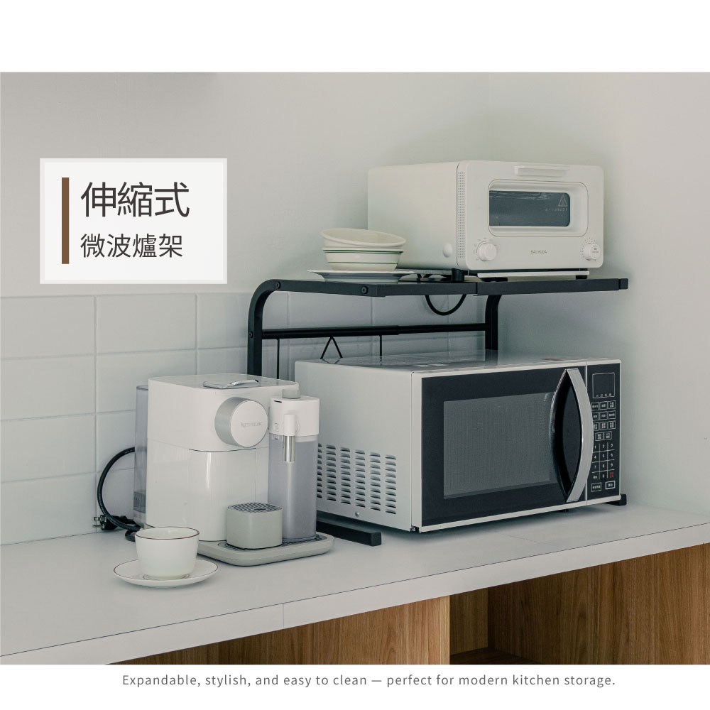 點我下載【H&R安室家】台製時尚伸縮式微波爐架 置物架 收納架 KS36A黑色
