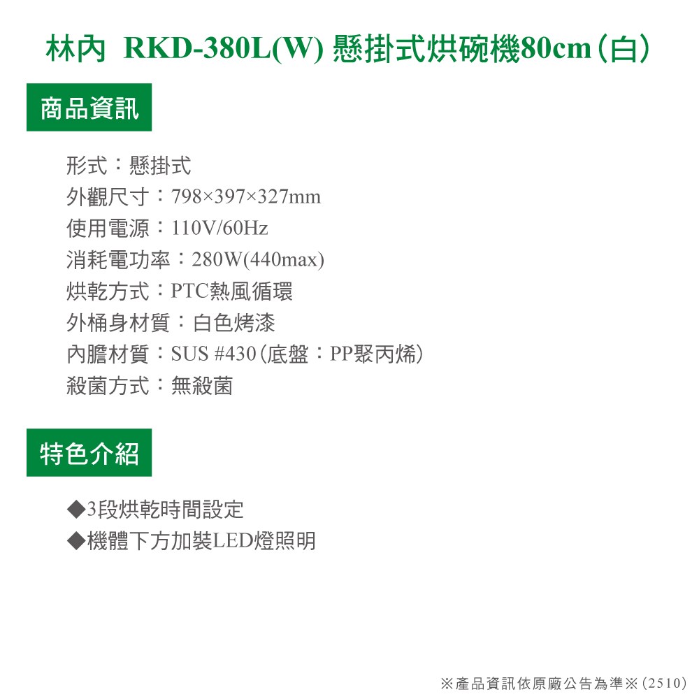 型號:RKD-380L(W)
