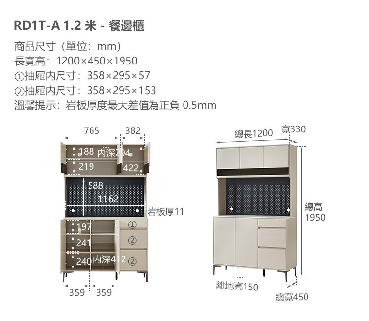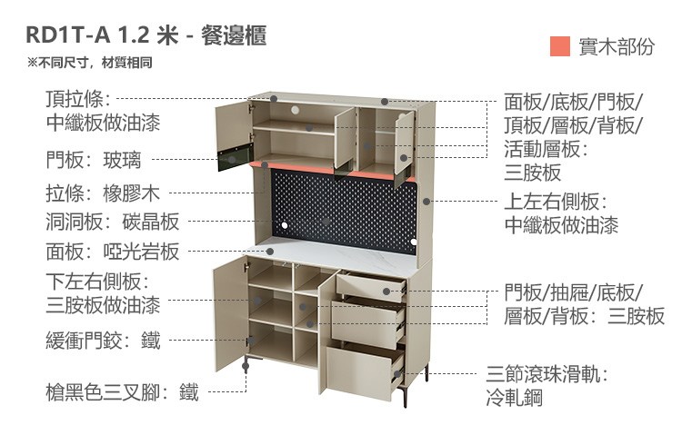 hoi!林氏木業皓月現代功能洞洞板岩板面 1.2M 高餐邊櫃 RD1T